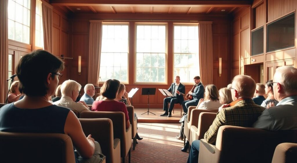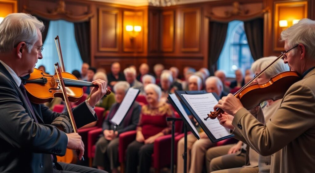 Getting seniors involved in these music events can change lives. It’s not just about listening to stunning music. It also builds a sense of community and belonging, bringing friends together to share these experiences. These concerts offer a mix of new discoveries and timeless favorites. And they connect people who share a love for chamber music.