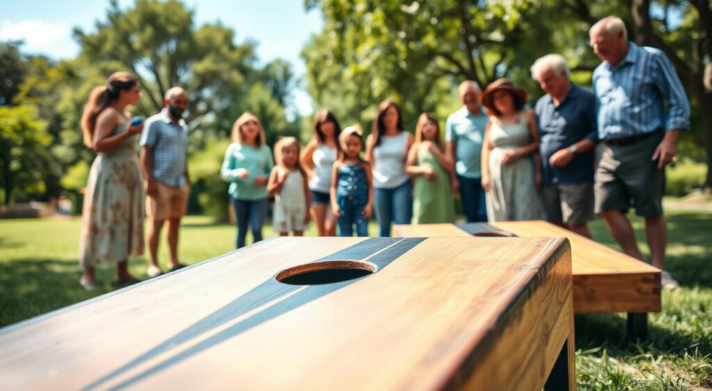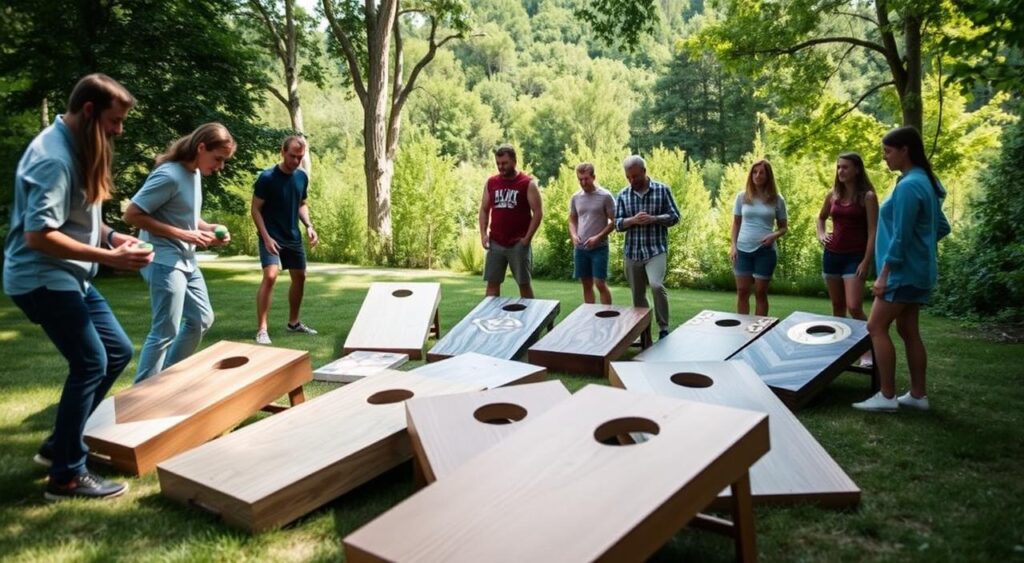 Making cornhole for all ages means creating fun for everyone. By designing special card challenges, both kids and adults can enjoy. This approach turns your event into a great family-friendly cornhole activity.