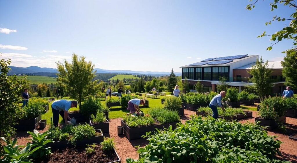 Community gardens bring fresh food and joy to green communities. Residents can grow food and flowers together. This strengthens ties and adds fun outdoor activity.