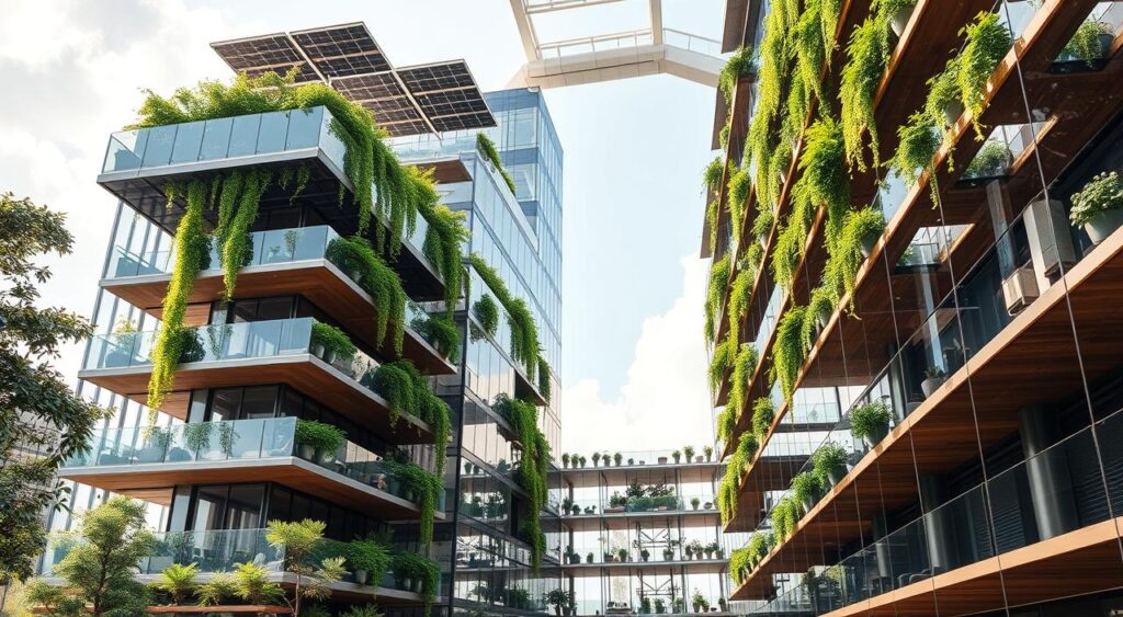 - Green roofs and solar panels: These help with energy production and keep buildings insulated, boosting sustainability.