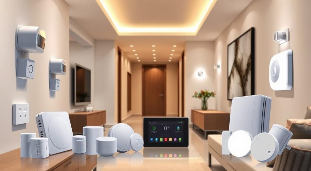 When picking infrared sensors for your home’s hallways, look for key features. These include how far they can detect, how sensitive they are, and if they work with your smart home gadgets.
