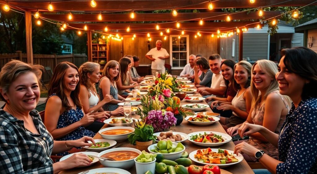 Exploring global cuisines is a hit for progressive dinners. Each stop can feature food from different countries. Start with Mexican snacks, then Italian pasta, and end with French sweets. It’s a delicious way to travel the world in one night.