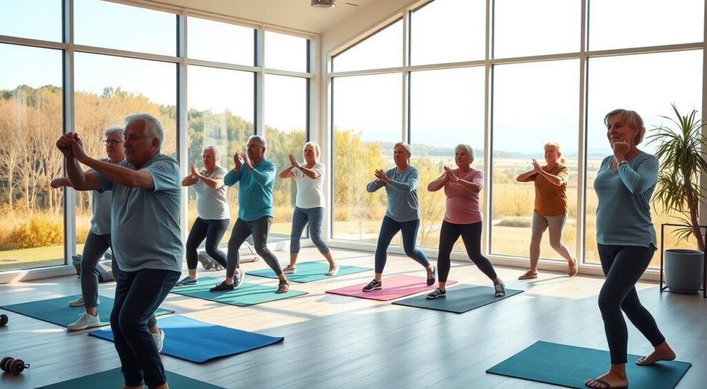 Low-impact exercises don’t stress the body much. They’re perfect for older adults who might have health issues or mobility limits. These exercises help build strength, increase flexibility, and improve heart health safely.