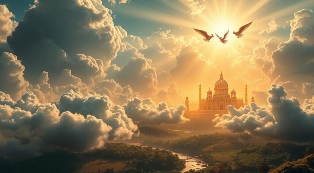 Understanding heaven in the Holy Scriptures gives deep insights into our spiritual beliefs and hopes, highlighting the importance of ‘understanding heaven in scripture key passages to reflect on’. In Scripture, the term ‘heavens’ can refer both to the physical sky above and to the divine, holy realm where God’s presence resides. Heaven is often called ‘God’s dwelling place’ in scripture, emphasizing it as the glorious, divine habitation where God’s presence is fully manifested and where believers’ ultimate hope lies. Various scriptures provide a clear image of these heavenly realities in its cherished place, and introduce the concept of the ‘heavenly one’—the ultimate spiritual reality that earthly things reflect. God’s throne is also described in heaven, symbolizing His authority and glory in this divine realm. The Greek word for heaven, ‘ouranos’, is often used in the Bible and shapes our understanding of the biblical concept of heaven as both a physical and spiritual dimension.