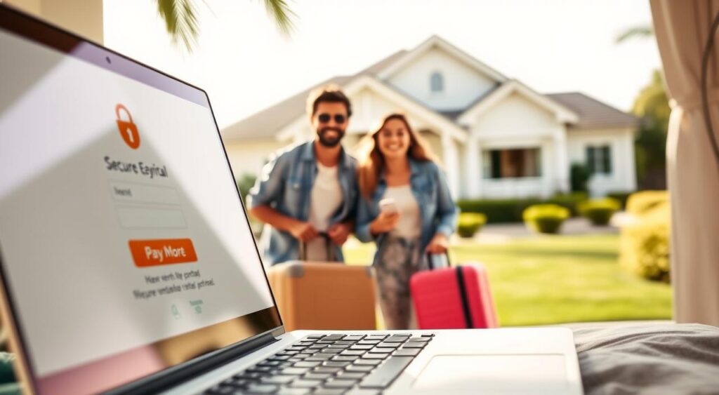 Using technology is key to keeping transactions and interactions safe in the vacation rental industry. By using advanced tools, we can make online security better. This gives everyone peace of mind.